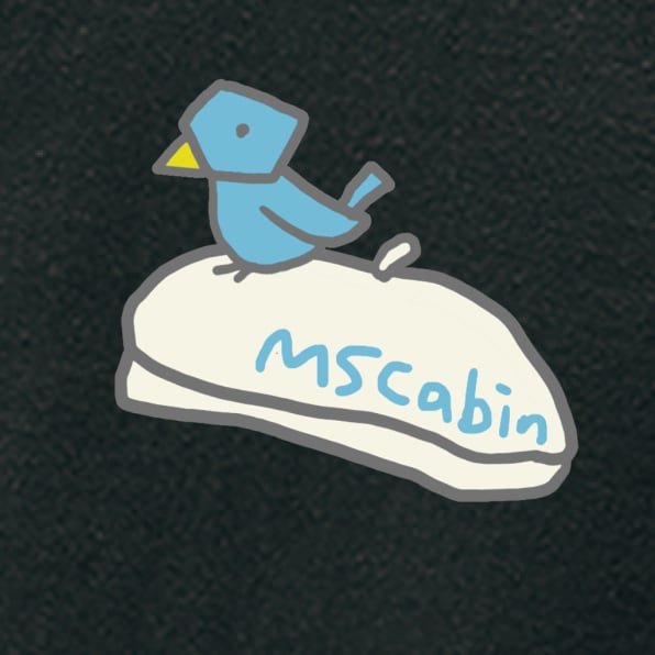 青いトリが、<MS Cabin> のベレーにとまってひと休み。