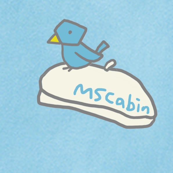 青いトリが、<MS Cabin> のベレーにとまってひと休み。